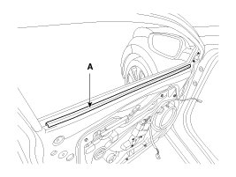 4. Carefully adjust the glass (A) until you can see the bolts, then loosen them. Separate the glass from the glass run and carefully pull the glass out through the window slot.