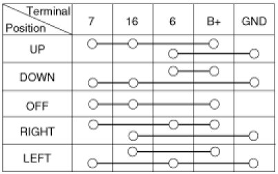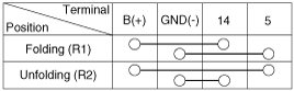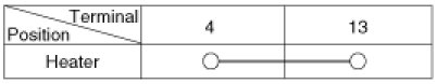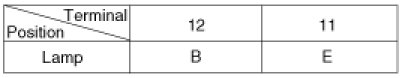 3. Apply battery voltage to each terminal as shown in the table and verify that the mirror operates properly.