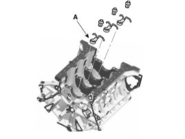 (1) Align the bearing claw with the claw groove of the cylinder block, push in the 4 upper bearings(A).