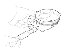 (1) Install the ring compressor, check that the bearing is securely in place, then position the piston in the cylinder, and tap it in using the wooden handle of a hammer.