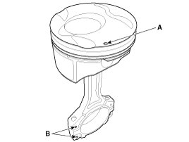 (2) Install the bearings(A) in the connecting rod and connecting rod cap(B).