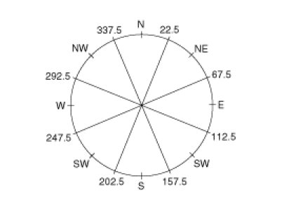 Switch points between the 8 cardinal directions, these switch points are ± 10°