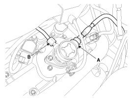 - Be sure to check the low pressure fuel hose quick-connector (A) is completely connected to the high pressure fuel pump until a confirmation 'click' sound is heard.