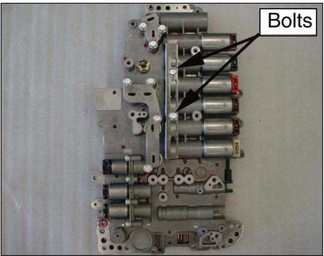 8. Remove the 10 bolts that secure the valve body to the case and remove the valve body.