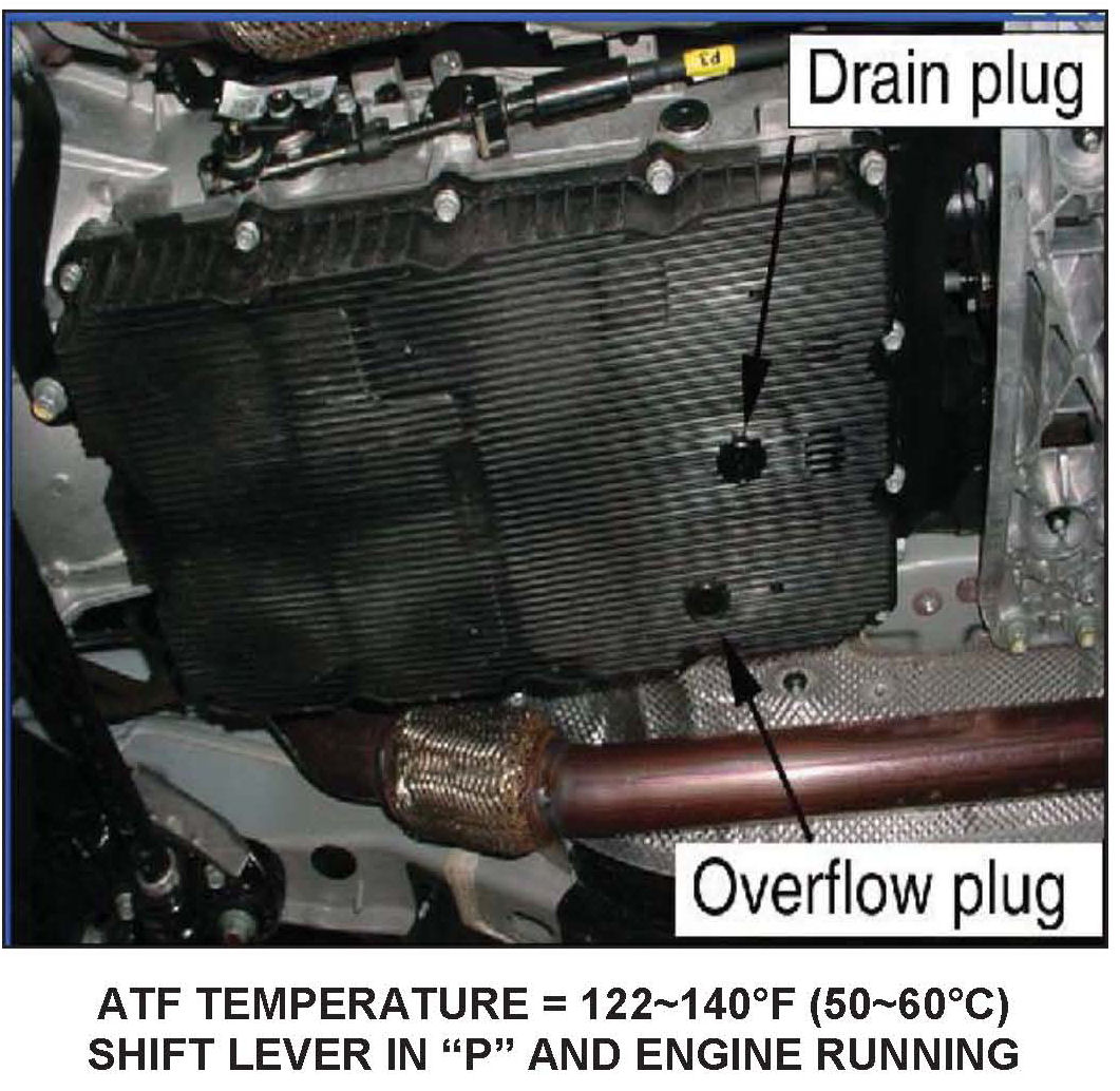Add approximately 4~5 additional quarts of SPH-IV-RR ATF through the fill plug until the ATF flows out in a thin steady stream.