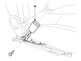 2. After loosening the mounting bolt, then remove the front seat belt buckle (A).