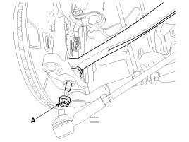 4. Loosen the bolts and nuts and then remove the lateral arm (A) from the sub frame.