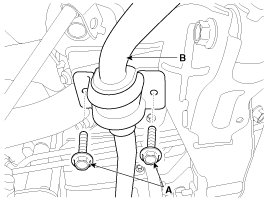 3. Remove stabilizer (B) from the cross member by loosening the clamp mounting bolts (A).