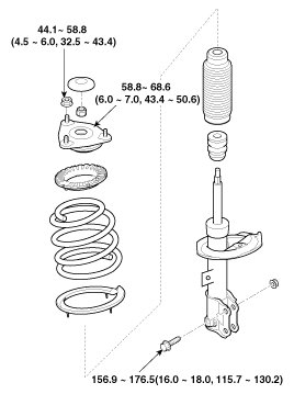 3. Disconnect the front strut assembly with the knuckle by loosening the bolt & nut.
