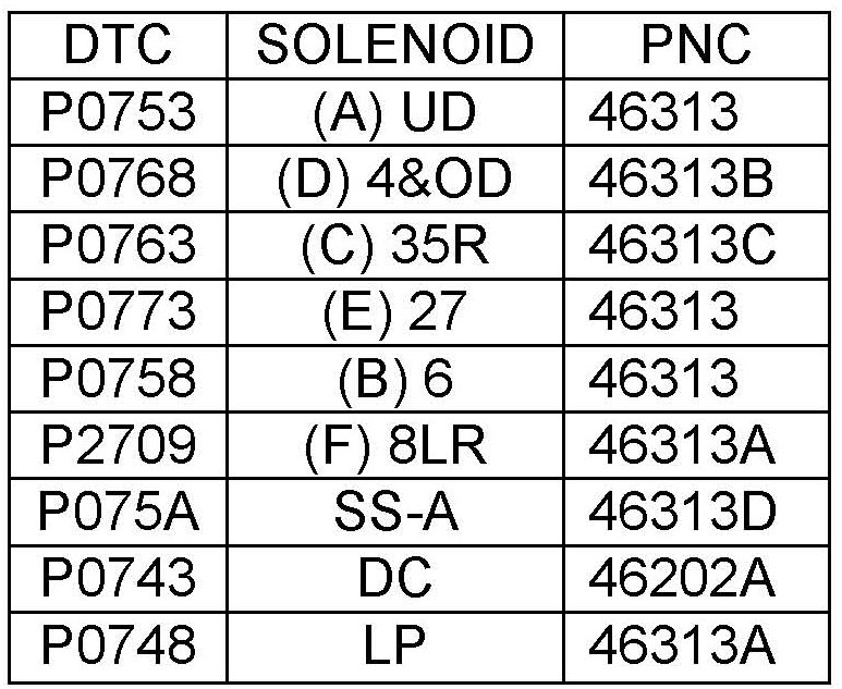 11. Refer to the solenoid DTC recorded in Step 1 and replace the related solenoid. Refer to the PNC in the parts catalog.