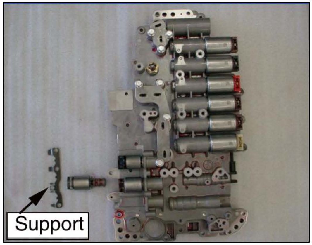14. Use a 5mm hex socket to remove 4 bolts that secure the support to the valve body and remove the support.