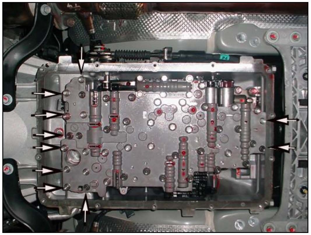 8. Remove the 10 bolts that secure the valve body to the case and remove the valve body.