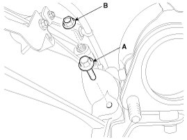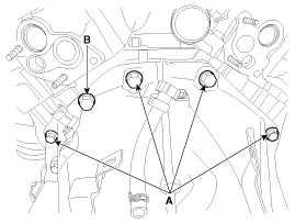 20. Remove the mounting bolts (A-3 ea, B-1ea) on the transmission side.