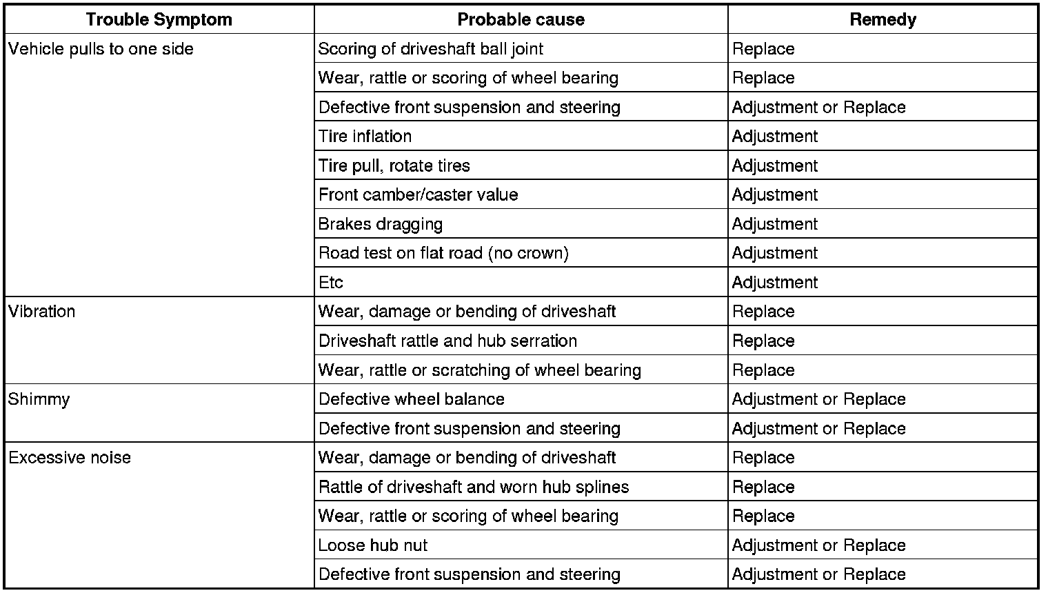 Drive Axles, Bearings and Joints