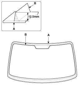 8. Remove the windshield molding (A) from the edge of the windshield glass (B).
