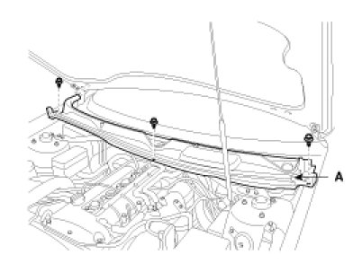 4. Remove the weather strip then remove the cowl top cover (A) after removing 3 rivets.