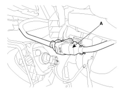 2. Disconnect the sensor connector at the inside of the rear bumper, and then remove the sensor (A) from the housing.