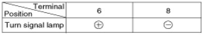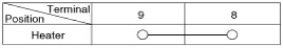 3. Apply battery voltage to each terminal as shown in the table and verify that the mirror operates properly.