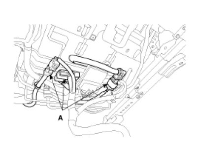 5. Disconnect the connectors (A), and remove the seat assembly.