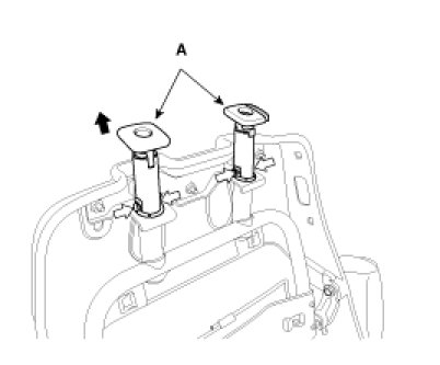 6. Pull out the headrest guides (A) while pinching the end of the guides, and remove them.
