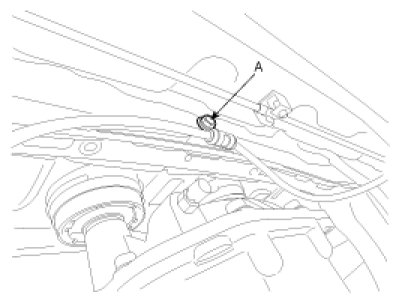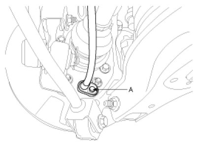 9. Remove the parking brake cable after removing the bolt (A).