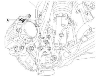 3. Loosen the right-rear brake bleed screw (A) to allow air to escape from the system. Then tighten the bleed screw securely.