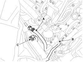 21. Disconnect the fuel hose (A), PCSV hose (B) and the intensifier hose (C).