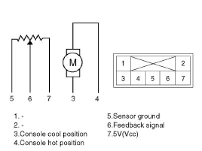 3. Verify that the console temp control actuator operates to the defrost mode when connecting 12V to the terminal 3 and grounding terminal 4.
