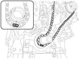 Before removing the timing chain, mark the RH/LH timing chain with an identification based on the location of the sprocket because the identification mark on the chain for TDC (Top Dead Center) can be erased.