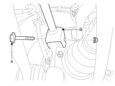 11. Loosen the upper arm link mount bolt and then remove the upper arm link(B).