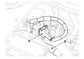 4. Disconnect the ventilation hose (B) from the canister close valve.