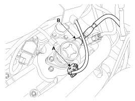 - Be sure to check the low pressure fuel hose quick-connector (A) is completely connected to the high pressure fuel pump until a confirmation 'click' sound is heard.