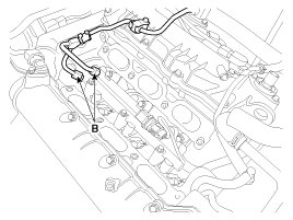 - Be sure to install the high pressure fuel pipe (B) with the specified torques.