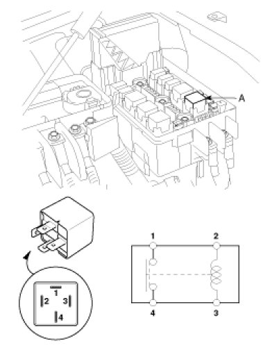 2. Remove the rear glass defogger relay (A) from the engine room relay box.