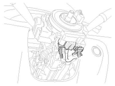 6. Disconnect the clock spring and horn connector, then remove the clock spring.