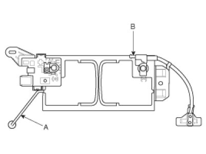 1. Disconnect the battery sensor connector (A) then battery negative terminal (B) and positive terminal (C).