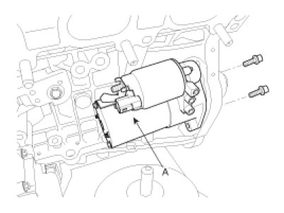13. Remove the starter (A).