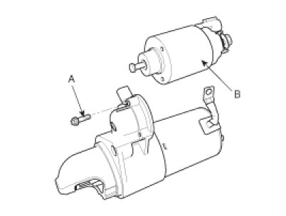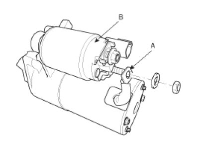 12. Disconnect the startor connector (A) and cable (B) from the 'B' terminal.