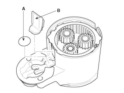 8. Disconnect the planet shaft assembly (A) and lever (B).