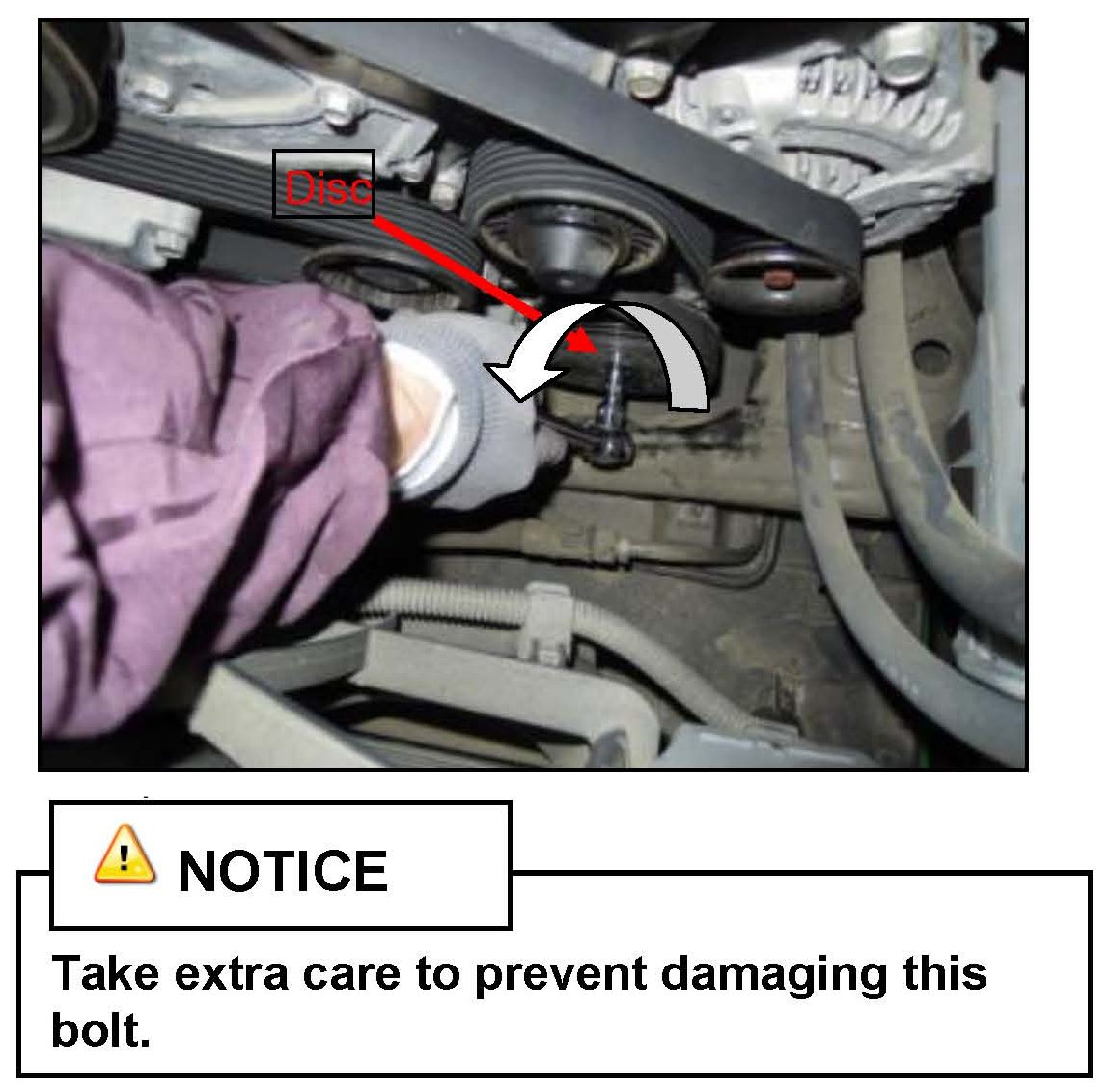 ^ Visually check whether the disc and pulley is rotating properly without slipping.