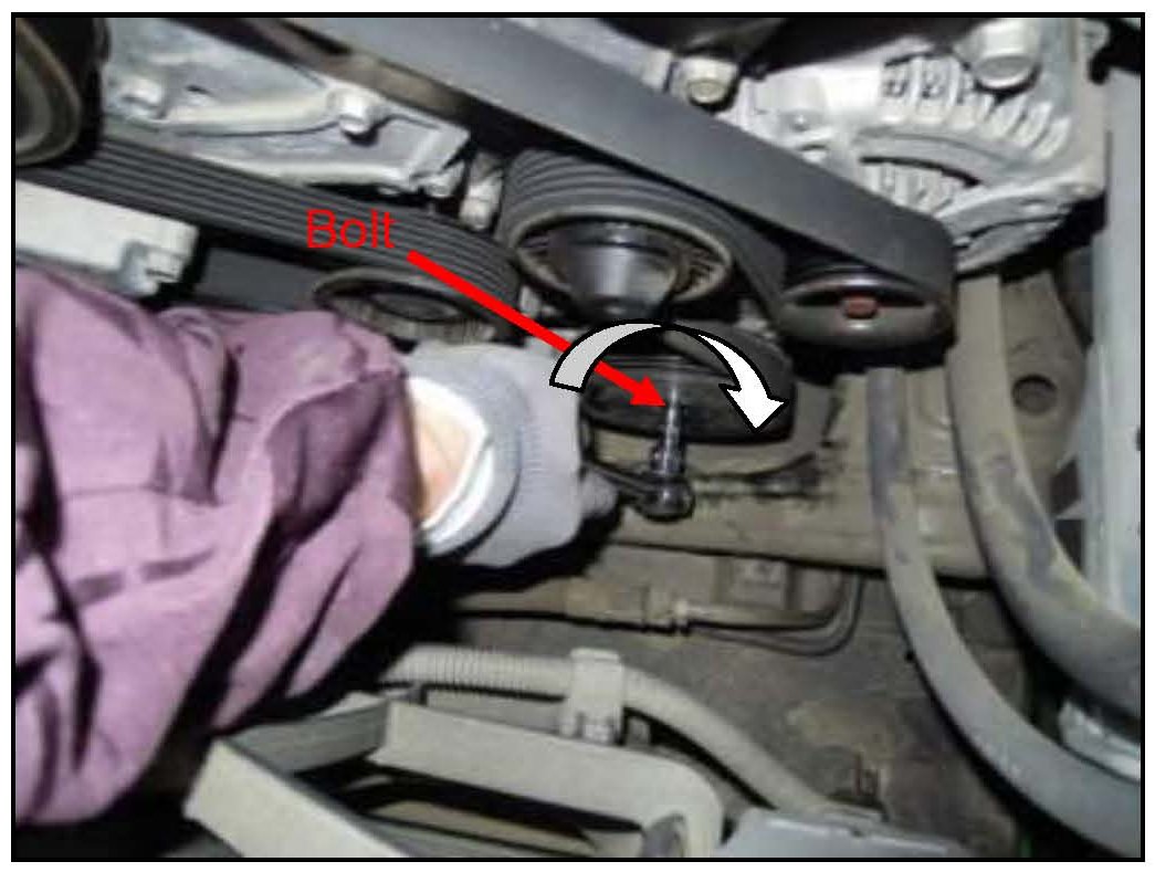 8. Reinstall the 8mm center bolt from the A/C compressor and disc.