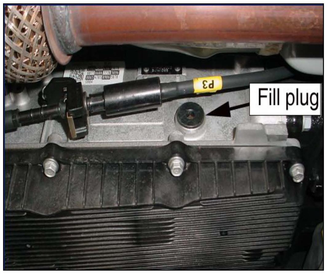 Use a fluid pump or suction gun to add approximately 4 quarts of SPH-IV-RR ATF through the fill plug.