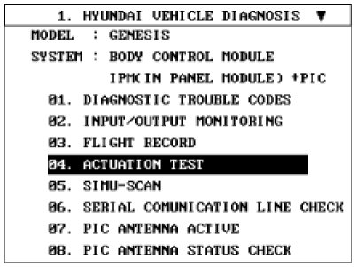 3. To check the input value of windshield deicer switch in force mode, select option "Actuation test".