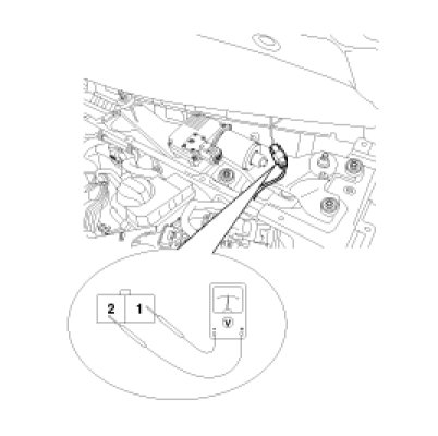 4. Turn the ignition switch ON and the windshield deicer switch ON, then measure the voltage between the terminals of harness side deicer connector.
