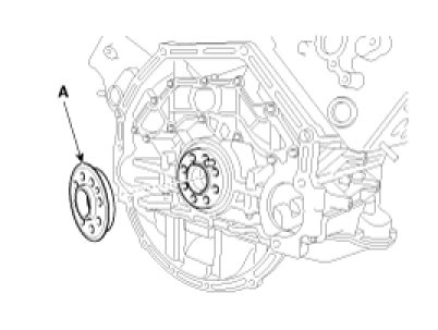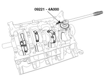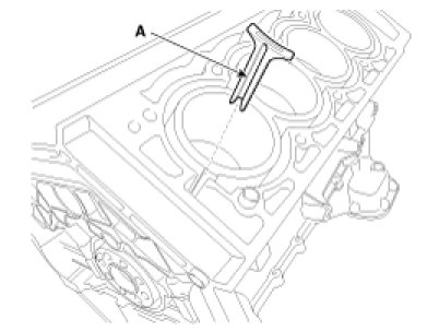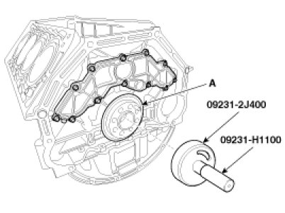 13. Using the SST(09231-2J400, 09231-H1100) and a plastic hammer, tap in a new oil seal(A) until SST surface is flush with the cylinder block.