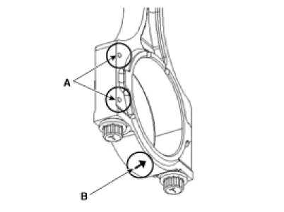 (2) Install the bearings(A) in the connecting rod and connecting rod cap(B).
