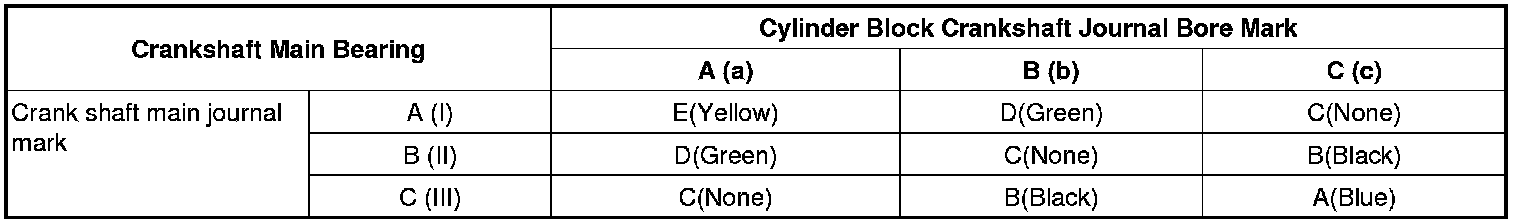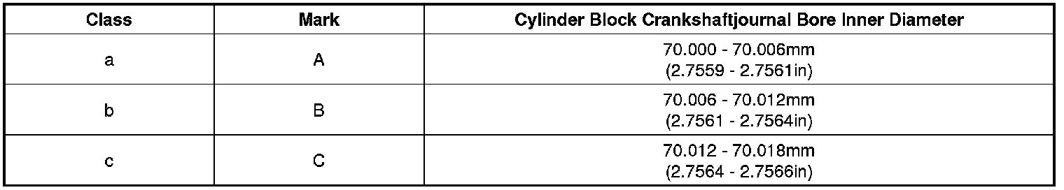 If the proper clearance cannot be obtained by using the appropriate larger or smaller bearings, replace the crankshaft and start over.