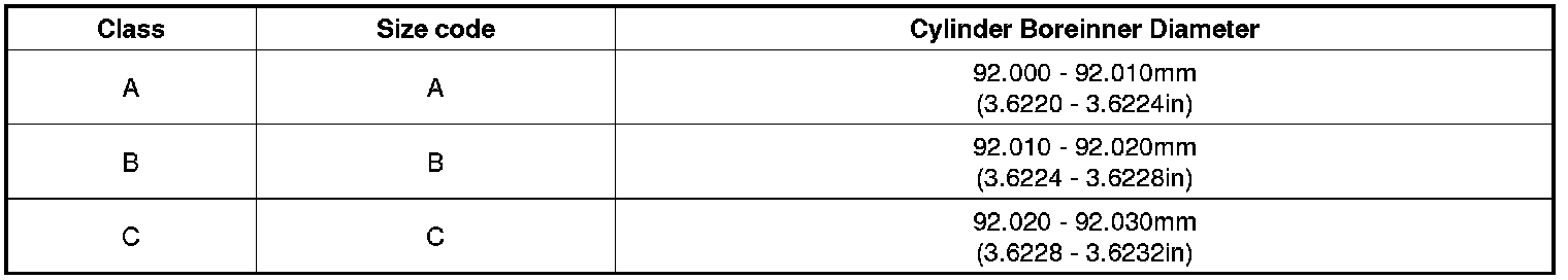 Oil ring : 0.20 - 0.70mm (0.0079 - 0.0276in)