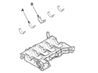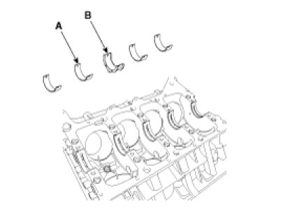 4. Install the main bearings (A) (No.1,2,4,5 journal) and the center bearings (B) (No.3 journal).
