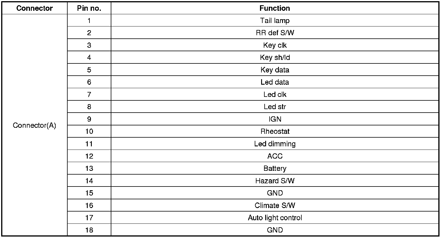 Connector Pin Function